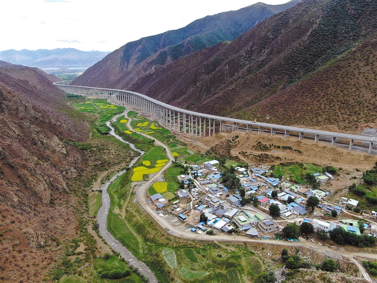 寬闊平坦的高速公路像絲帶一樣,穿過(guò)圭嘎拉深厚的屏障,把念果村和新倉(cāng)村、把山南市和拉薩市拉得越來(lái)越近。