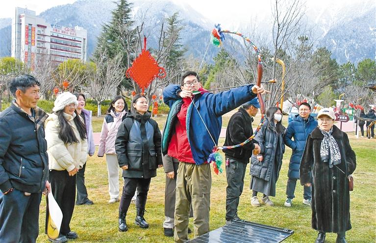 圖為群眾體驗工布響箭。記者 劉楓 王珊 攝