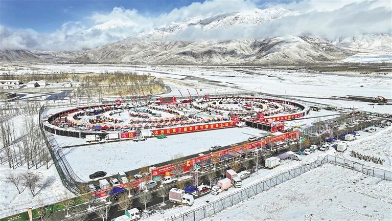 拉薩市達(dá)孜區(qū)第三屆年貨節(jié)現(xiàn)場(chǎng)(無人機(jī)拍攝)。記者 鹿麗娟 攝