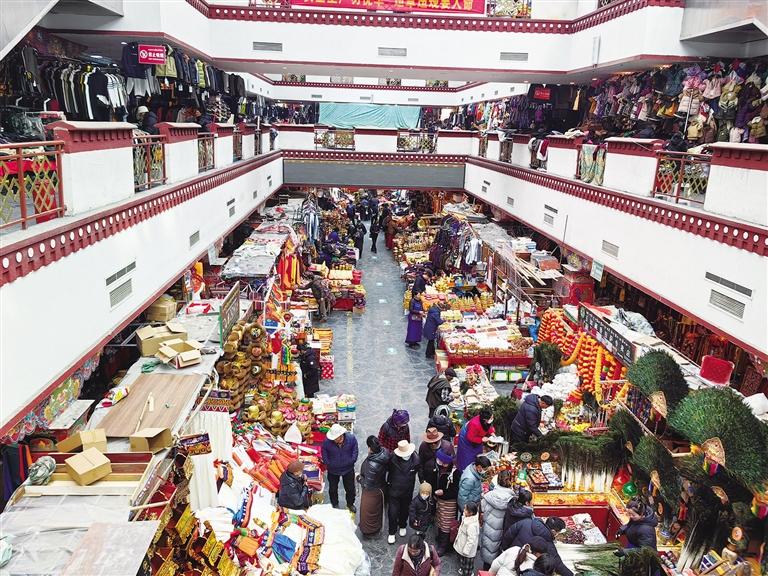 巴姆表示,隨著藏歷新年的臨近,前來(lái)八廓商城購(gòu)買(mǎi)糖果的人越來(lái)越多,生意也越來(lái)越好。她的女兒非常懂事,偶爾還會(huì)主動(dòng)上前幫忙招呼顧客,吸引了不少客人?!斑@里的年貨種類(lèi)豐富,購(gòu)物很方便?!鳖櫩脱虢鹫f(shuō),每年她都會(huì)來(lái)八廓商城采購(gòu)年貨,這里幾乎可以買(mǎi)到藏歷新年所需的一切物品。