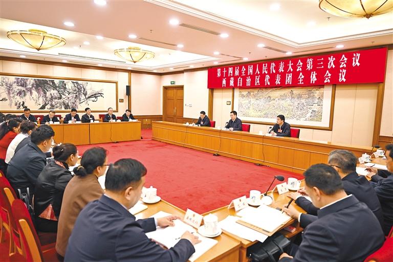 3月11日,西藏代表團(tuán)舉行全體會議,審議關(guān)于全國人大常委會工作報告、最高人民法院工作報告、最高人民檢察院工作報告的決議草案。