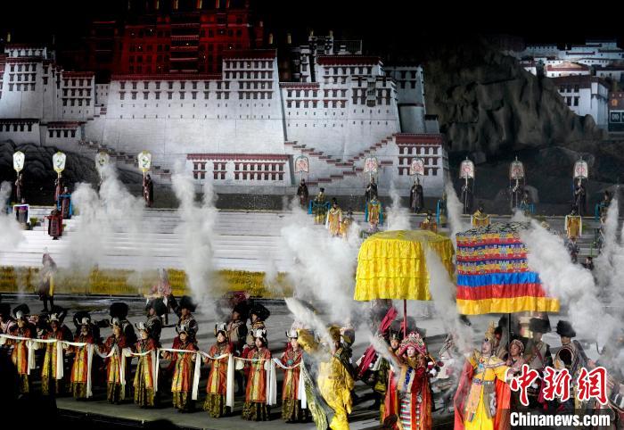 圖為《文成公主》大型實景劇第十三季演出現(xiàn)場。中新社記者 李林 攝