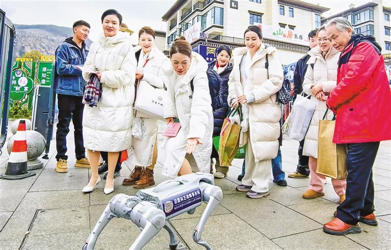 據(jù)了解,林芝市啟用銀灰色人工智能機(jī)器狗GO2作為移動(dòng)普法載體,搭載自主巡航、動(dòng)態(tài)避障等6項(xiàng)智能功能,在工布天街商圈開(kāi)展全天候動(dòng)態(tài)巡游。機(jī)器狗背部印制民法典專(zhuān)題二維碼矩陣,同步連接“法治林芝”抖音號(hào)、“林芝司法為民”微信公眾號(hào)、林芝掌上12348平臺(tái)等4個(gè)線上端口,實(shí)現(xiàn)群眾學(xué)法“碼上達(dá)”,迅速觸及案例解析、法律問(wèn)答、維權(quán)指引等9類(lèi)服務(wù)模塊。