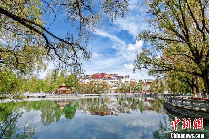 4月,高原古城拉薩一派春景,布達(dá)拉宮前后潭水凝碧、柳樹搖青,游客絡(luò)繹不絕。