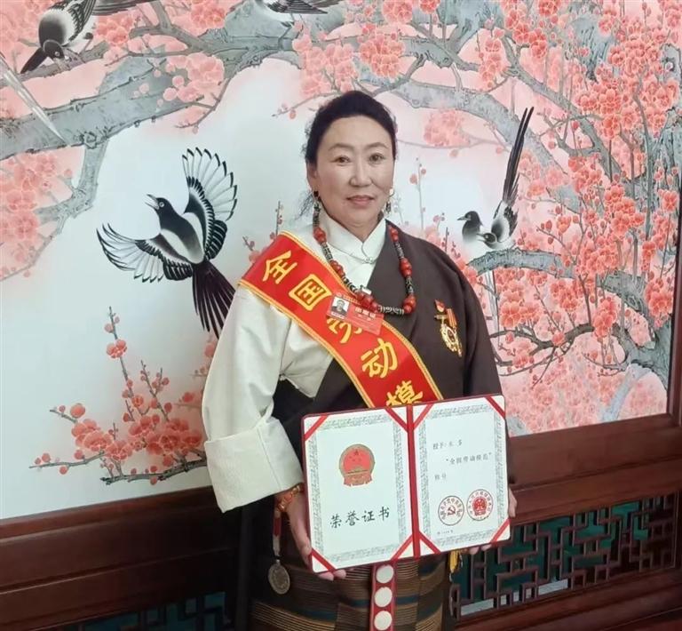 圖為米多展示“全國(guó)勞動(dòng)模范”榮譽(yù)證書(shū)(資料圖片)。