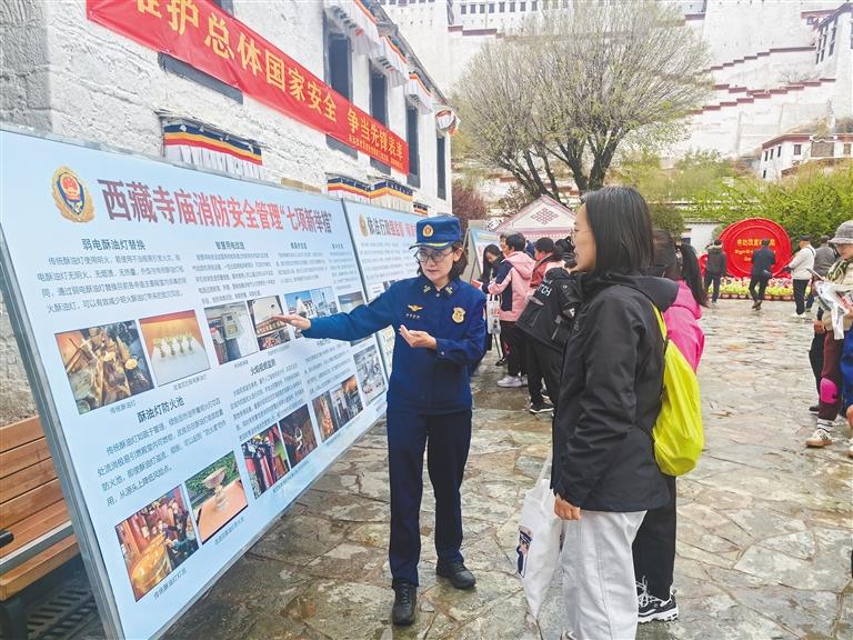 圖為布達(dá)拉宮消防救援大隊(duì)宣傳人員為群眾普及消防安全常識(shí)。通訊員 梁詩(shī)敏 旦增卓嘎 次仁央宗 攝