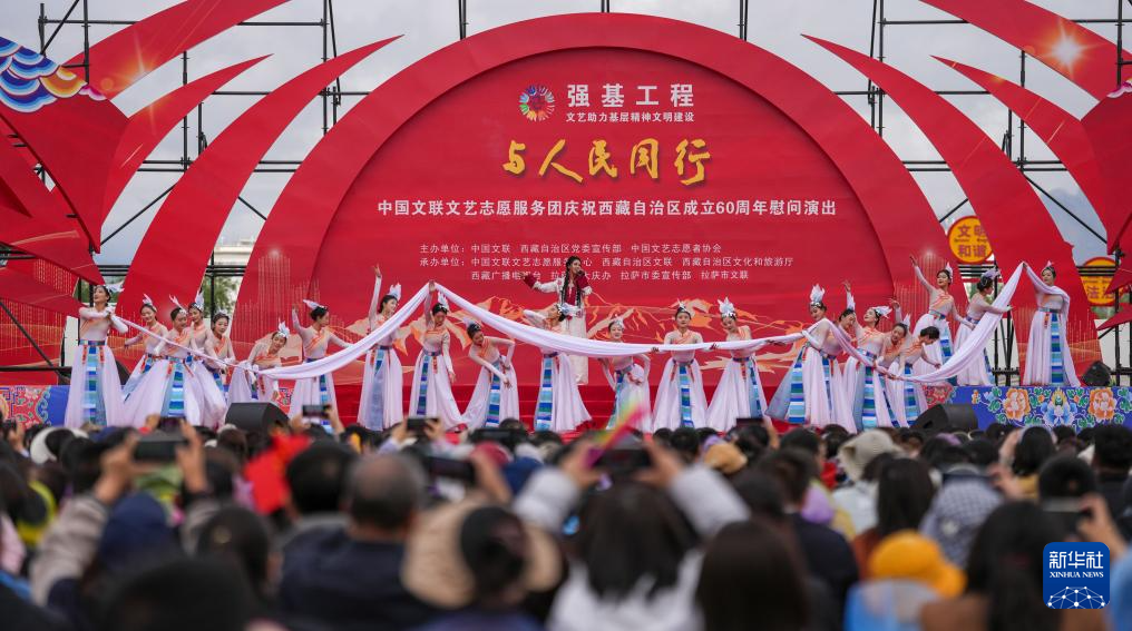 5月25日,由中國文聯(lián)、西藏自治區(qū)黨委宣傳部、中國文藝志愿者協(xié)會(huì)主辦的“與人民同行”中國文聯(lián)文藝志愿服務(wù)團(tuán)慶祝西藏自治區(qū)成立60周年慰問演出在位于拉薩的西藏會(huì)展中心廣場舉行。