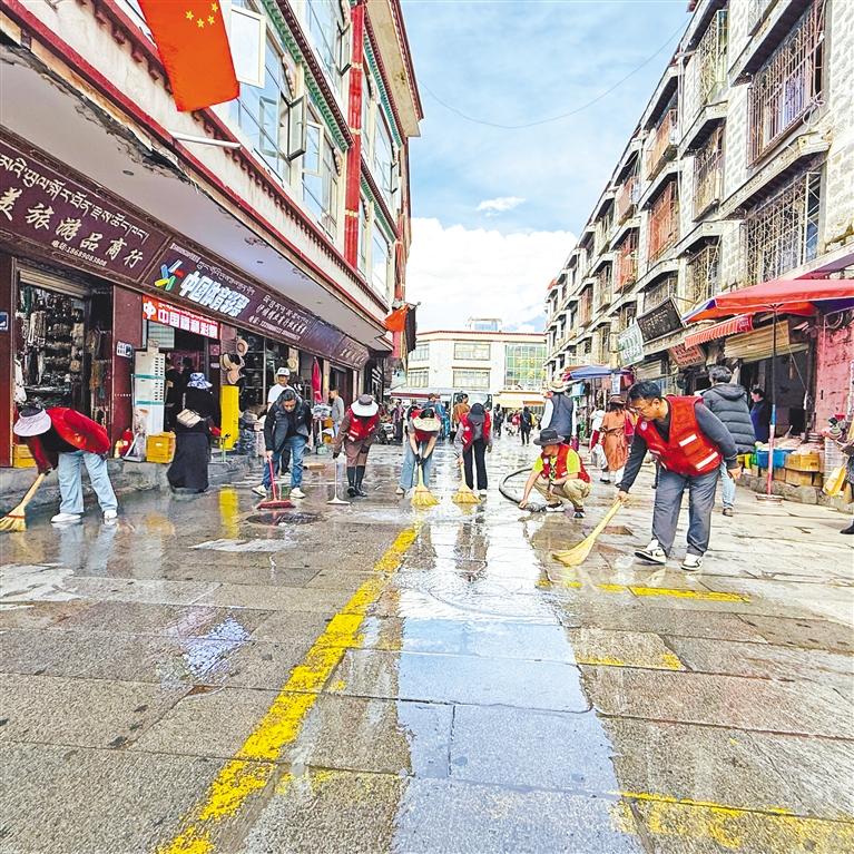 近日,拉薩市城關(guān)區(qū)八廓街道沖賽康社區(qū)黨總支開展“黨建引領(lǐng)聚合力,清潔家園促文明”環(huán)境整治活動。30余名黨員志愿者、駐社區(qū)工作隊員及網(wǎng)格員分工協(xié)作,手持清潔工具深入大街小巷,清理衛(wèi)生死角、鏟除墻面小廣告,并對廣場地面進(jìn)行高壓沖洗?;顒右浴包h建紅”引領(lǐng)“生態(tài)綠”,推動基層治理與文明城市創(chuàng)建深度融合,為社區(qū)居民營造整潔宜居的生活環(huán)境。