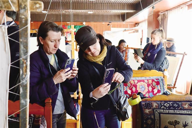 以卡若拉冰川作為日喀則的首站,無疑是開啟雪域高原之旅的絕佳選擇。在領略完壯麗的自然奇觀后,6月7日,國際旅行商代表團轉(zhuǎn)而深入探訪藏文化瑰寶。他們來到日喀則市桑珠孜區(qū)的夏魯村,專程前往西藏優(yōu)章傳統(tǒng)手工藝發(fā)展有限公司考察非物質(zhì)文化遺產(chǎn)——夏魯泥塑和優(yōu)章彩靴。