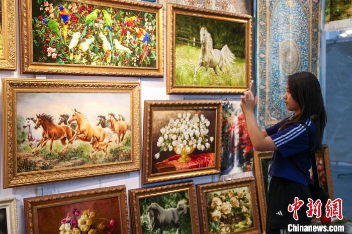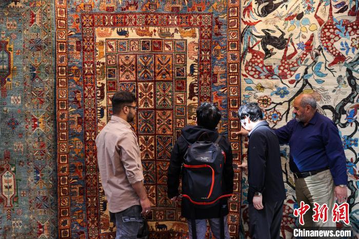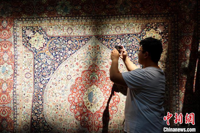 圖為市民拍攝伊朗地毯。中新社記者 薛蒂 攝
