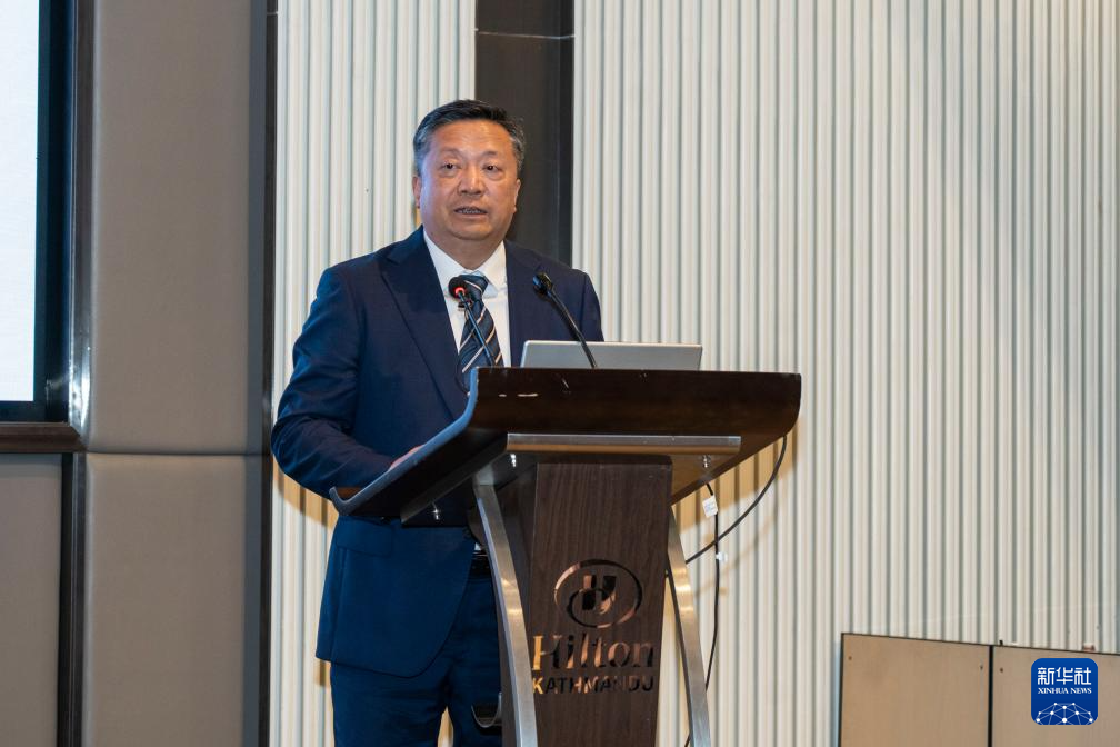 6月24日,一名中國(guó)藏學(xué)家在尼泊爾加德滿都舉辦的交流會(huì)上發(fā)言。新華社發(fā)(哈里·馬哈爾詹攝)