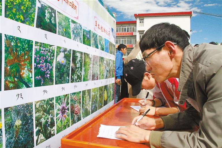 西藏藏醫(yī)藥大學(xué)學(xué)生參加藏醫(yī)藥草本植物認(rèn)藥知識(shí)競賽。西藏藏醫(yī)藥大學(xué)提供