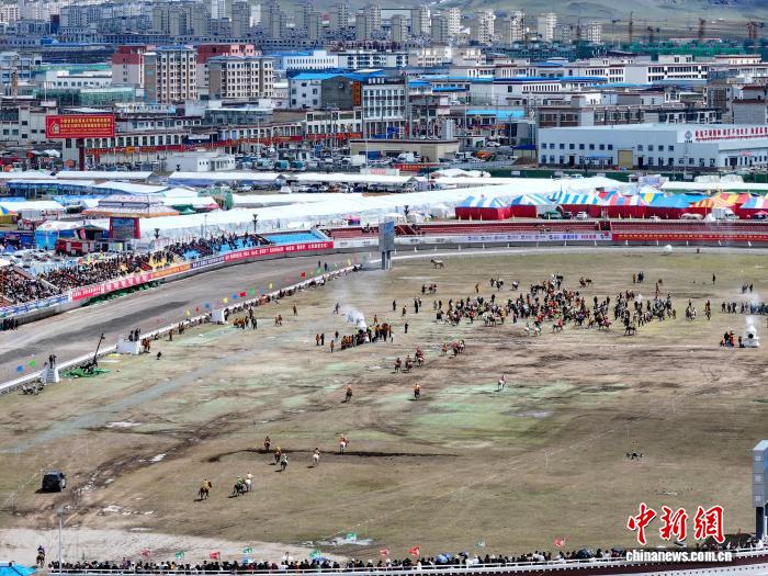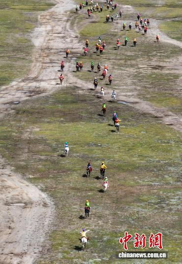 圖為恰青賽馬節(jié)傳統(tǒng)大跑決賽現(xiàn)場(無人機照片)。中新社記者 貢嘎來松 攝