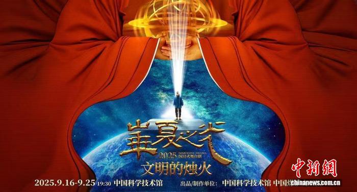中國科技館9月14日發(fā)布消息說,值此首個全國科普月期間,該館將于9月16日至25日(每晚19:30-20:45)連演10場沉浸式舞臺劇《華夏之光-文明的燭火》,公眾可于9月15日中午12:00起,通過其官方網(wǎng)絡(luò)平臺預(yù)約觀看。