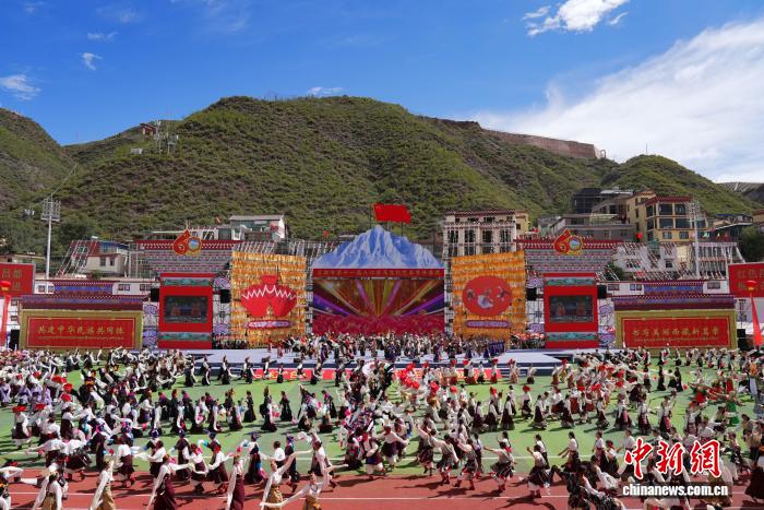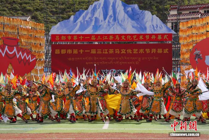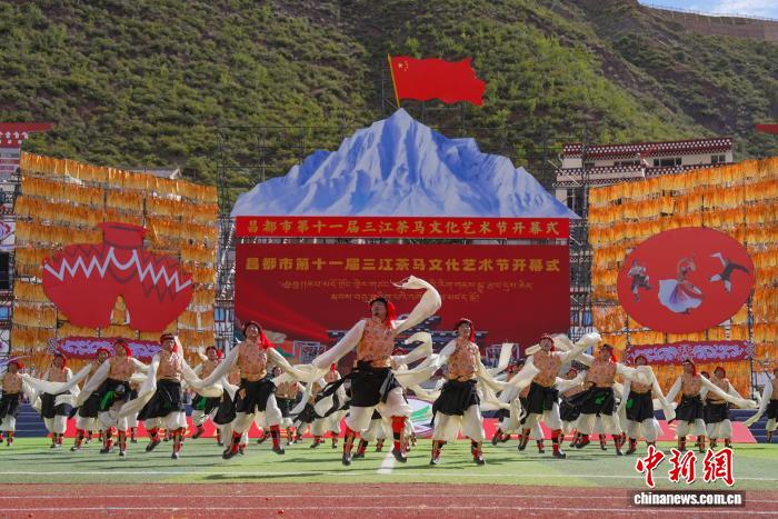 9月15日,西藏自治區(qū)昌都市第十一屆三江茶馬文化藝術(shù)節(jié)在津昌體育文化中心啟幕。開幕式以“紅色昌都 三江潮涌”為主題,由中共昌都市委員會(huì)、昌都市人民政府主辦,同步融入慶祝西藏自治區(qū)成立60周年元素,盡顯昌都文化魅力與發(fā)展活力。開幕式現(xiàn)場(chǎng),來(lái)自昌都11縣(區(qū))、身著絢麗節(jié)日盛裝的游行方陣依次登場(chǎng),各方陣通過(guò)特色展演展現(xiàn)地域文化風(fēng)采。隨后,正式文藝表演拉開帷幕,表演共分為“三江奔騰·紅色昌都”“金沙江·紅色起點(diǎn)”“怒江·指尖上的傳承”“瀾滄江·高原上的燈塔”“同心筑夢(mèng)向未來(lái)”五個(gè)篇章??蛋臀幕囆g(shù)團(tuán)、天津青年友好使者藝術(shù)團(tuán)、全國(guó)廣場(chǎng)舞愛好者及11縣(區(qū))藝術(shù)團(tuán)等千余名表演者同臺(tái)獻(xiàn)藝。圖為開幕式上的文藝演出。貢確 攝