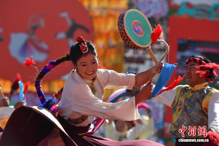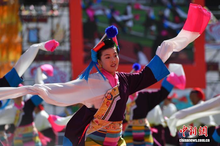 圖為開幕式上的文藝演出。貢確 攝