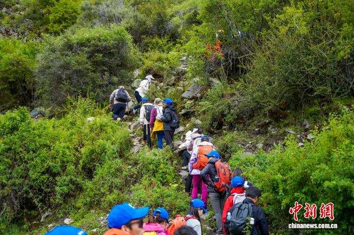 圖為徒步愛好者在曲水縣色甫溝。貢曲羅杰 攝