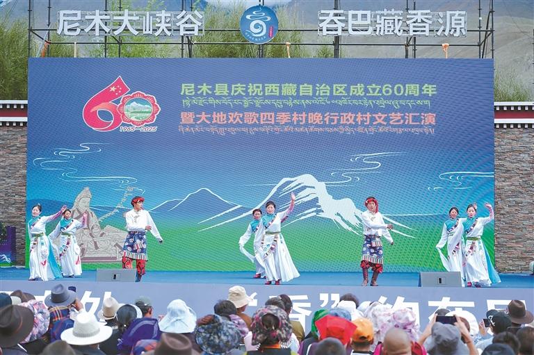 藏香文化旅游節(jié)上的大地歡歌四季村晚行政村文藝匯演。記者 鹿麗娟 攝