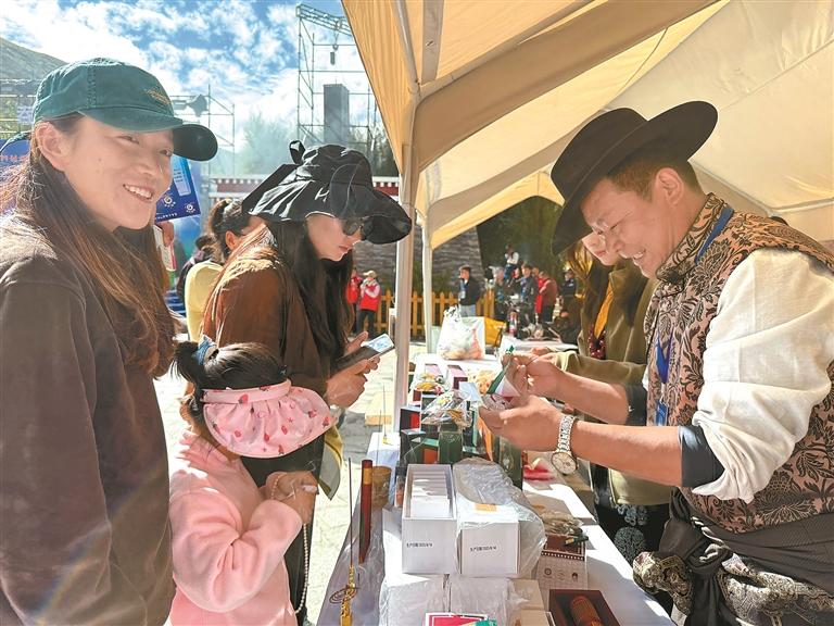 “今天我們帶來了6種藏香文創(chuàng)產(chǎn)品,分別有安神、提神、清潔空氣等系列,這些年我們除了在線下銷售,還要感謝尼木縣委、縣政府積極與線上各大平臺接洽,讓我們的藏香通過線上銷售,走出了尼木,讓北京、南京、天津等城市的客戶通過線上購買。所有藏香都是由縣委、縣政府組織的易地搬遷戶制作,這讓不少群眾不僅能就近就業(yè),還能照顧家里。特別感謝黨和政府對藏香保護和發(fā)展所做的各項工作?!笨h級非物質文化遺產(chǎn)傳承人洛桑旺堆在活動現(xiàn)場說。