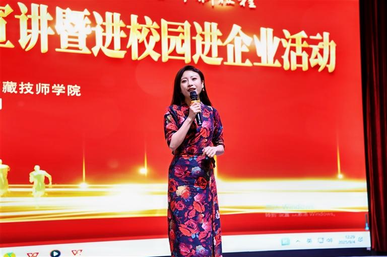 西藏廣播電視臺主持人益西卓瑪宣講。圖由自治區(qū)總工會提供