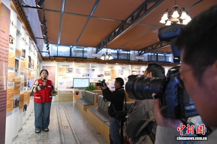 圖為媒體和網(wǎng)絡(luò)名人參觀八一社區(qū)家史館。貢嘎來松 攝