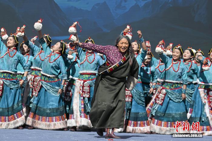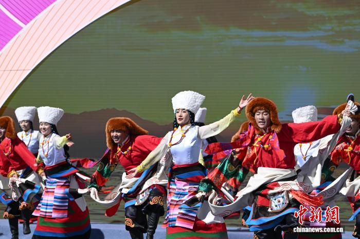 圖為阿里地區(qū)改則縣藝術(shù)團表演舞蹈《歡舞幸?!じ膭t情》。中新社記者 貢嘎來松 攝