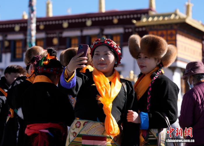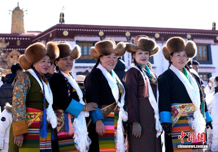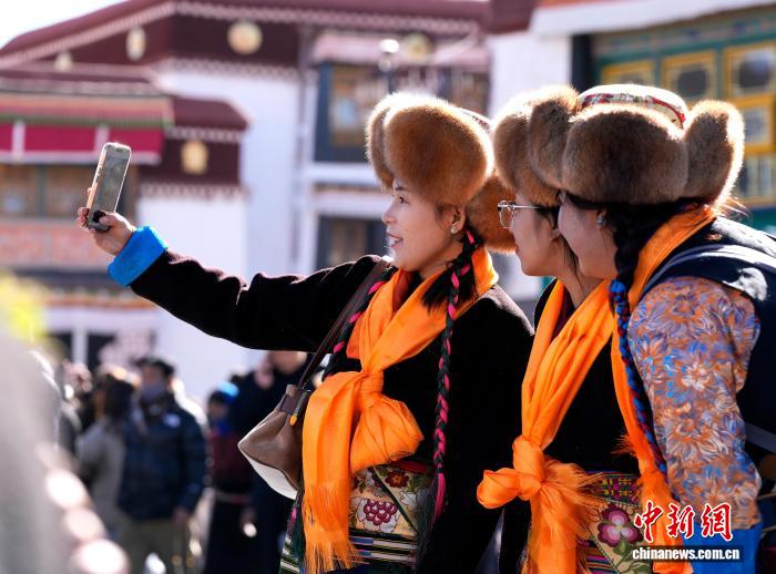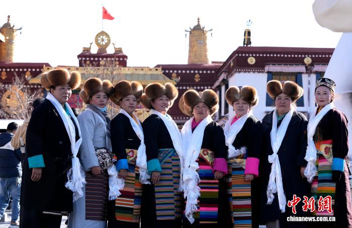 12月1日,西藏拉薩的婦女們盛裝來到拉薩大昭寺廣場,迎接“仙女節(jié)”到來。“仙女節(jié)”即吉祥天母節(jié),藏語稱“白來日追”。圖為拉薩婦女盛裝在大昭寺廣場拍照。中新社記者 李林 攝
