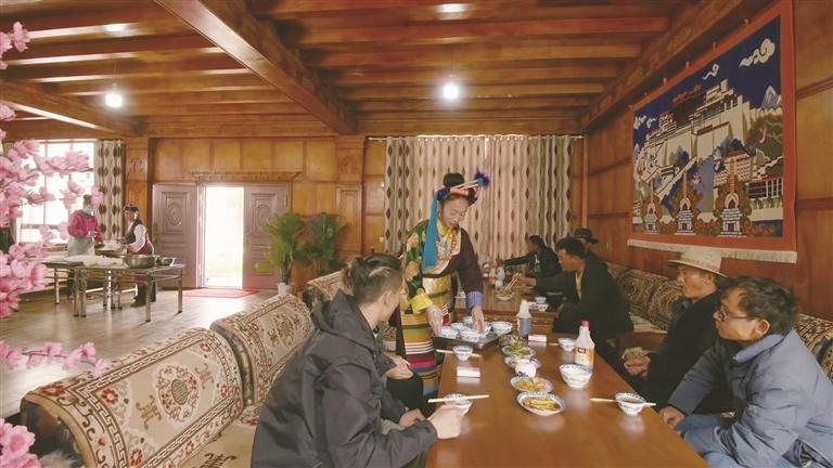 作為自治區(qū)級非遺傳承人、芒康縣“婦女致富帶頭人”的卓瑪拉姆,于2010年開辦鹽井果拉叢農(nóng)家樂,憑借著正宗的加加面風(fēng)味和熱情的服務(wù),逐漸積累了口碑。2012年,在各級政府的支持下,她采用“民族特色餐飲+鄉(xiāng)村旅游接待”的經(jīng)營模式,生意日益紅火。2017年,通過貸款300萬元、自籌160萬元翻建了農(nóng)家樂,將其升級為綜合型的民族特色餐飲店,經(jīng)營規(guī)模大幅擴大,最多時日接待游客達300余人。