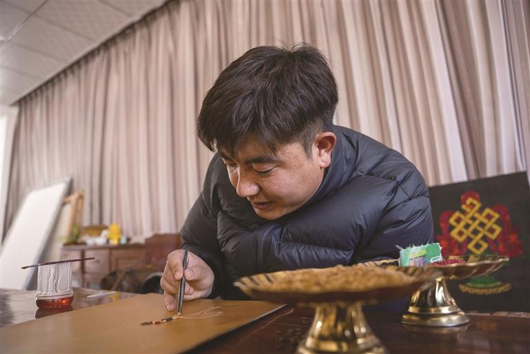 仁青多吉告訴記者,盡管因缺乏專業(yè)宣傳渠道,導(dǎo)致很多人未能知曉這份獨(dú)特的手藝,但自己從未想過(guò)放棄,這份堅(jiān)持源于純粹的熱愛(ài)。作為唐卡畫師,仁青多吉將繪制唐卡的專注,悉數(shù)傾注于青稞創(chuàng)作中?!安还苁钱嬏瓶ㄟ€是粘青稞,都要沉下心來(lái)?!彼寡裕@個(gè)副業(yè)賺不了多少錢,但傳承傳統(tǒng)技藝、宣傳家鄉(xiāng)文化的初心,讓他甘愿為熱愛(ài)買單,“哪怕不掙錢,我也想一直做下去?!?/p>