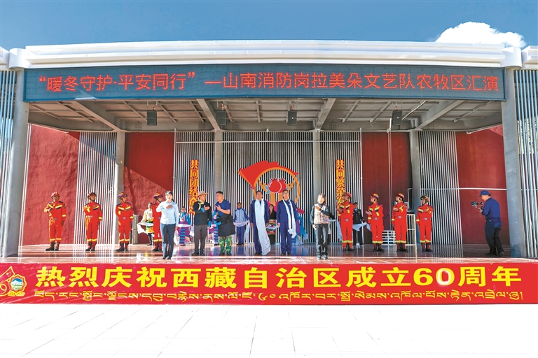 近日,山南市消防救援支隊崗拉美朵文藝隊“農牧區(qū)暖冬消防行”巡演首演,在乃東區(qū)多頗章鄉(xiāng)嘎東團結新村正式拉開帷幕。