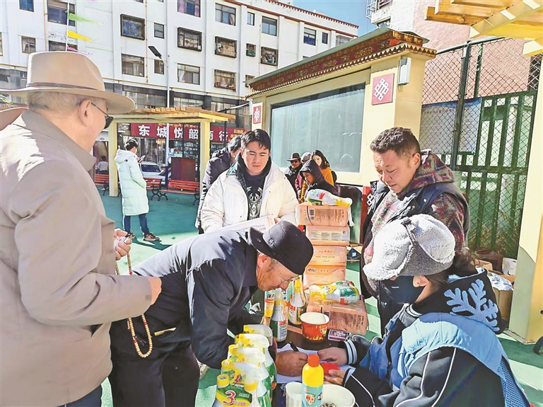 隨著春節(jié)與藏歷新年的臨近,城關(guān)區(qū)奪底街道振興社區(qū)處處洋溢著喜慶的氛圍,村民們都在精心籌備迎接“雙節(jié)”的到來(lái)。日前,社區(qū)以“黨建引領(lǐng)聚民生 三大節(jié)日同歡慶”為主題,組織轄區(qū)居民聆聽宣講、觀賞歌舞、齊跳鍋莊,并向困難群眾送上米、面、油等慰問物資。
