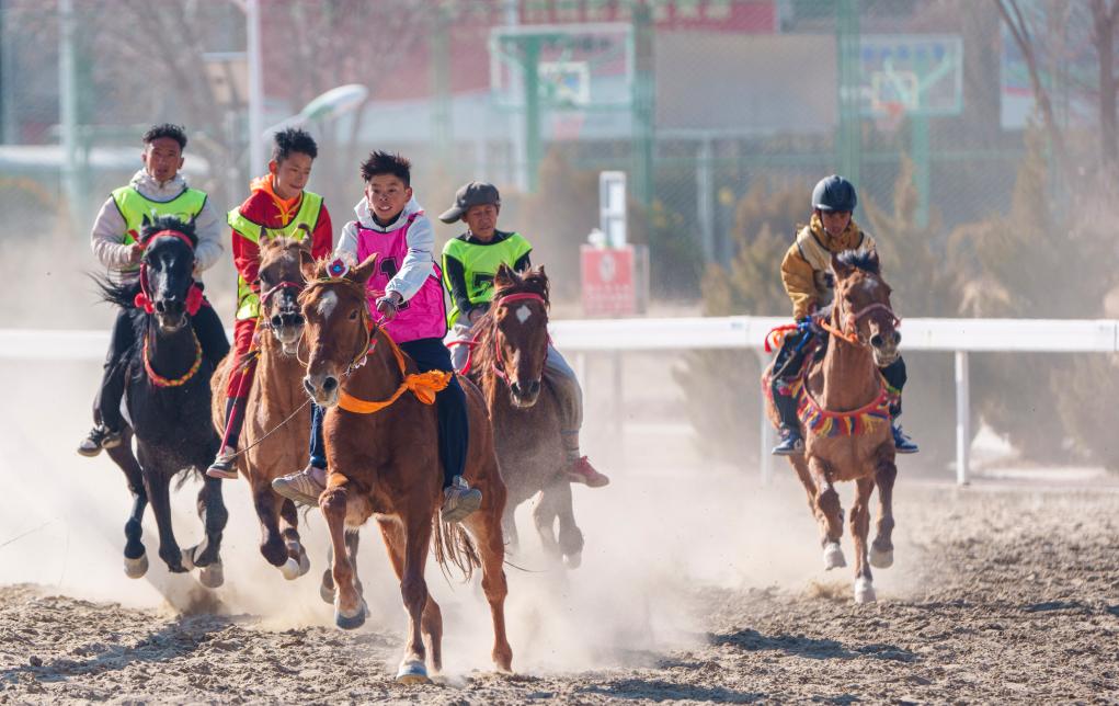 2月20日,選手們在民族賽馬2000米比賽中。新華社記者 丁增尼達(dá) 攝