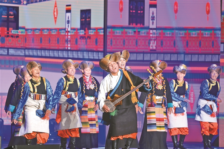 在浪卡子縣皖江劇院,紀(jì)念西藏民主改革67周年暨慶祝山南市撤地設(shè)市10周年文藝晚會(huì)正在上演。開(kāi)場(chǎng)舞《吉祥彩秀》的演員們身著盛裝,揮舞著絢麗靈動(dòng)的彩袖,瞬間點(diǎn)燃全場(chǎng)。紅歌聯(lián)唱《雪域歡歌頌黨恩》將經(jīng)典紅色旋律與藏語(yǔ)原創(chuàng)歌曲巧妙結(jié)合,帶領(lǐng)觀(guān)眾重溫那段波瀾壯闊的歷史。小品《在崗新春答卷》取材于基層干部的真實(shí)事跡,詼諧幽默的表演背后,是扎根一線(xiàn)、為民服務(wù)的責(zé)任擔(dān)當(dāng)。