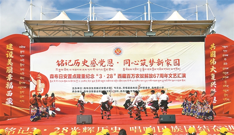 森布日安置點(diǎn)開(kāi)展紀(jì)念“3·28”西藏百萬(wàn)農(nóng)奴解放67周年文藝匯演。