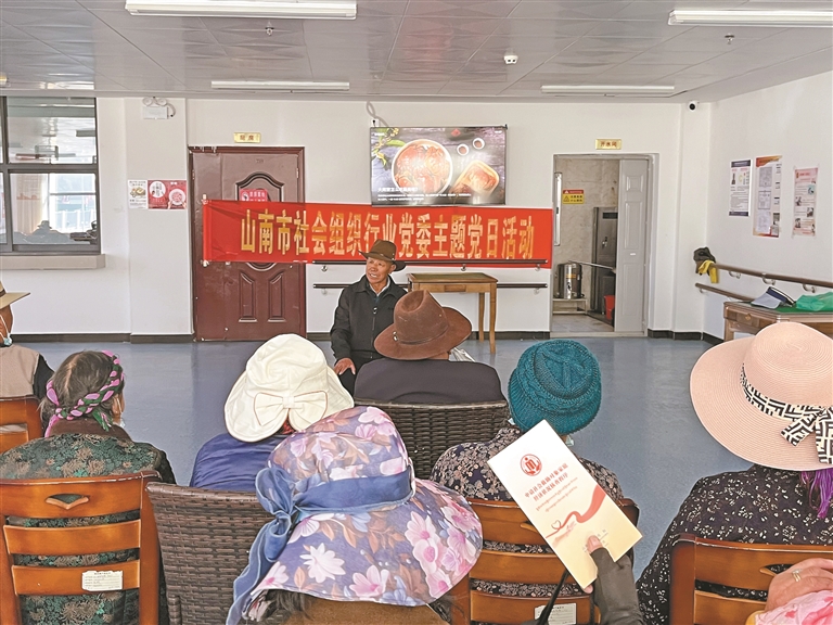 山南市社會(huì)組織行業(yè)黨委開(kāi)展主題黨日活動(dòng),老黨員洛桑向大家講述新舊西藏對(duì)比。