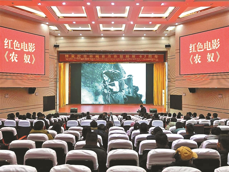 浪卡子縣組織播放紅色電影《農(nóng)奴》,激勵(lì)廣大干部群眾聽(tīng)黨話(huà)感黨恩跟黨走。記者 武沛濤 攝