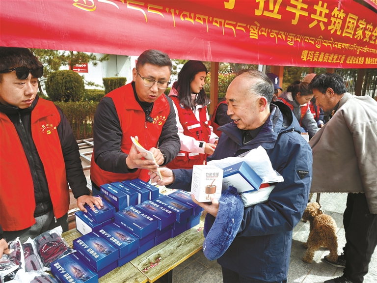 圖為工作人員向轄區(qū)群眾普及國家安全知識(shí)。記者 格桑倫珠 攝