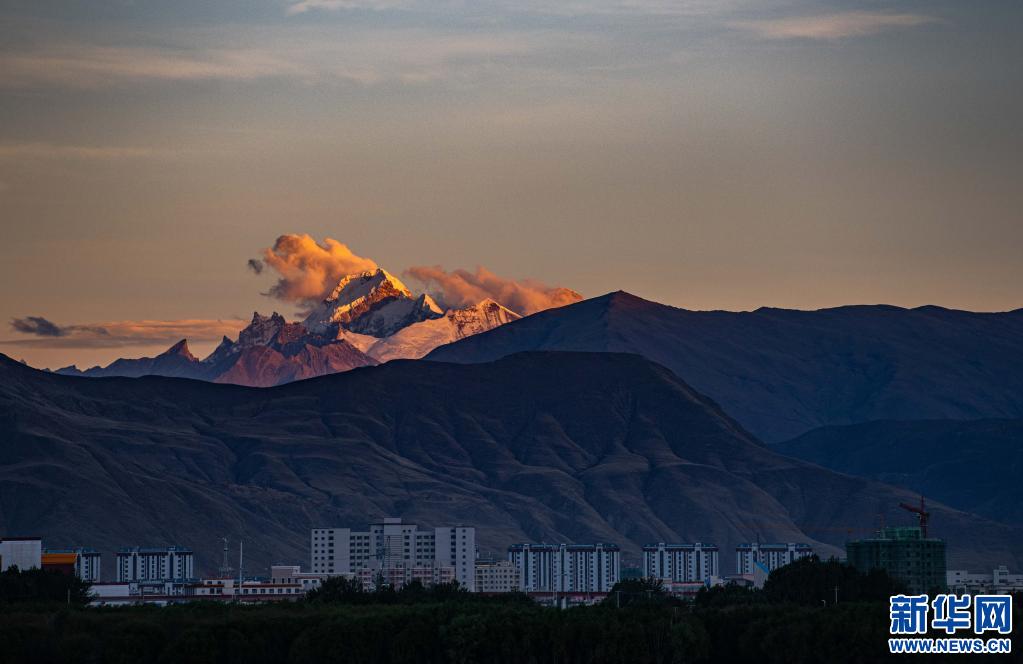 從山南市澤當鎮(zhèn)遠眺雅拉香布雪山(6月2日攝)。新華社記者 普布扎西 攝