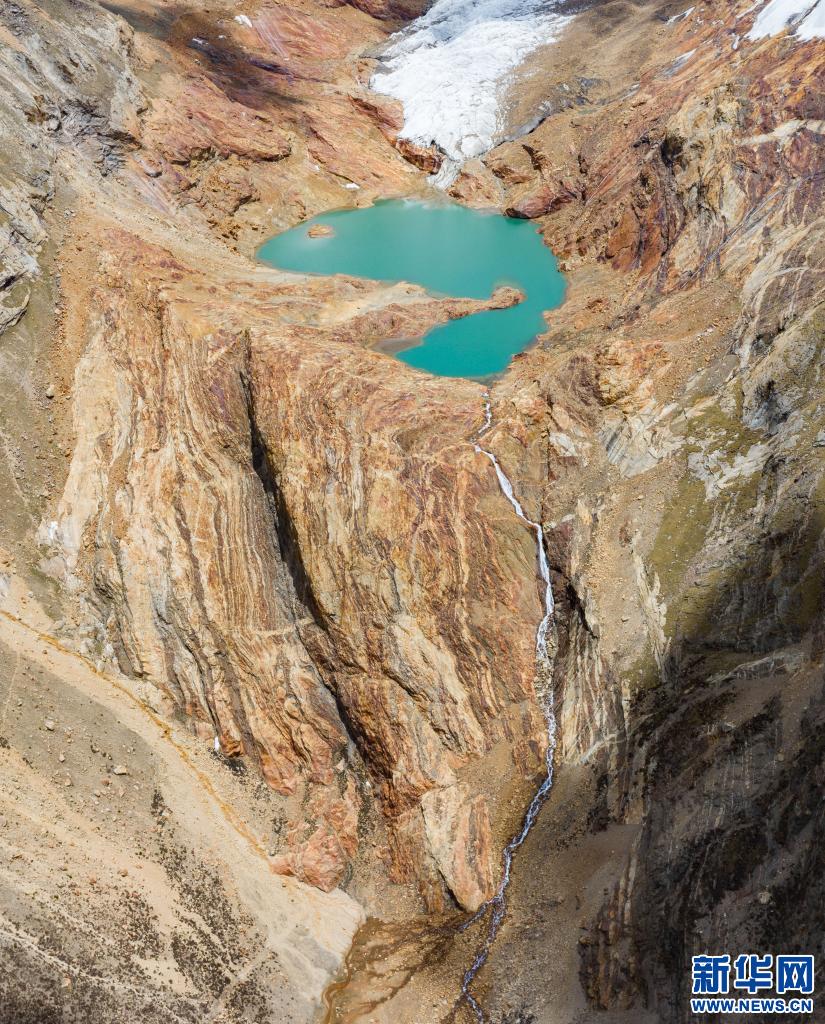 鳥瞰雅拉香布雪山腳下的冰川融水湖(6月4日攝,無人機照片)。新華社記者 洛卓嘉措 攝