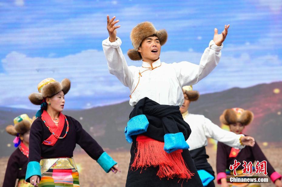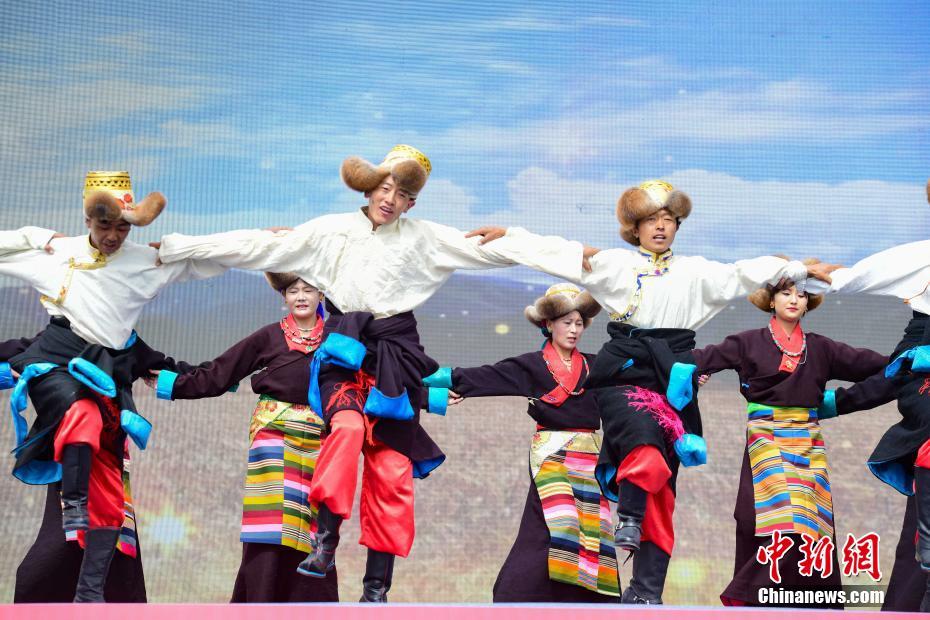 9月23日,“中國(guó)農(nóng)民豐收節(jié)”西藏慶?;顒?dòng)在拉薩市墨竹工卡縣舉行,當(dāng)?shù)孛癖娸d歌載舞,慶?!柏S收節(jié)”。 中新社記者 貢嘎來(lái)松 攝