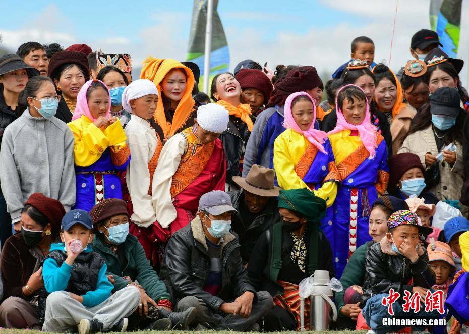 9月23日,“中國(guó)農(nóng)民豐收節(jié)”西藏慶?;顒?dòng)在拉薩市墨竹工卡縣舉行,當(dāng)?shù)孛癖娸d歌載舞,慶?!柏S收節(jié)”。圖為慶?;顒?dòng)吸引大批觀眾。 中新社記者 貢嘎來(lái)松 攝