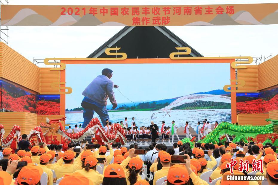 9月23日,2021中國(guó)農(nóng)民豐收節(jié)河南省主會(huì)場(chǎng)在焦作市武陟縣嘉應(yīng)觀啟幕?;顒?dòng)現(xiàn)場(chǎng),隨處可見(jiàn)“豐收”符號(hào),各類農(nóng)副產(chǎn)品琳瑯滿目,船上漁民捧著魚(yú)喜笑顏開(kāi)。圖為2021中國(guó)農(nóng)民豐收節(jié)河南省主會(huì)場(chǎng)。闞力 攝