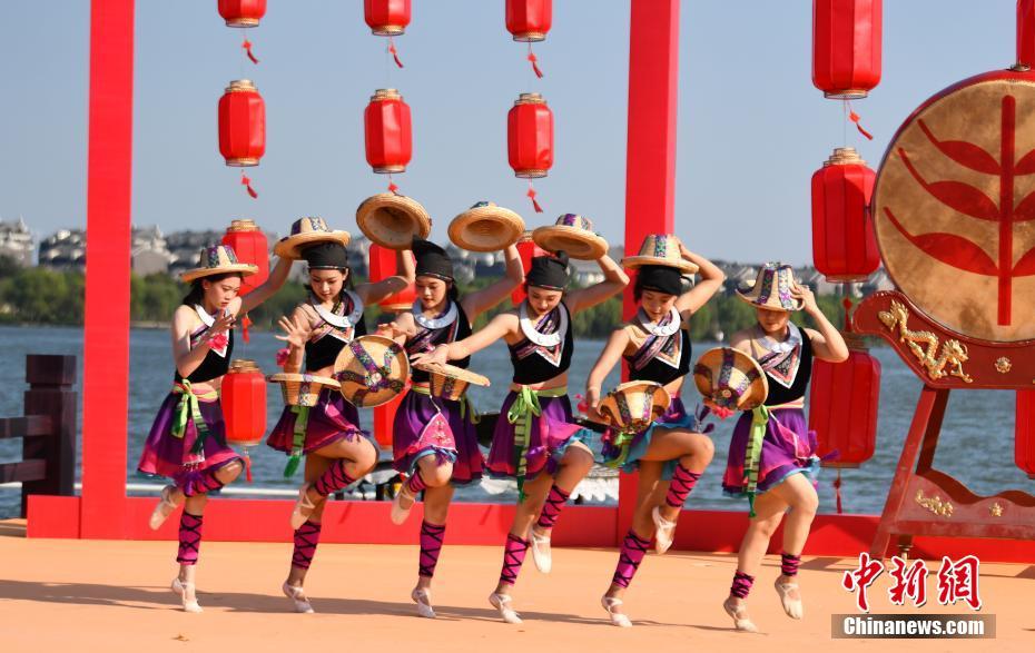 9月23日下午,2021年中國(guó)農(nóng)民豐收節(jié)浙江嘉興主場(chǎng)其中一項(xiàng)子活動(dòng),“亮絕活·樂(lè)豐收”長(zhǎng)江水文化習(xí)俗展演活動(dòng)在浙江嘉興湘家蕩月亮灣沙灘舉行。歌舞表演、非物質(zhì)文化遺產(chǎn)技藝表演、水上特技表演等特色融合節(jié)目集中亮相,精彩的演出吸引了觀看者掌聲不斷。圖為演藝人員在表演《快樂(lè)的草帽》。張茵 攝