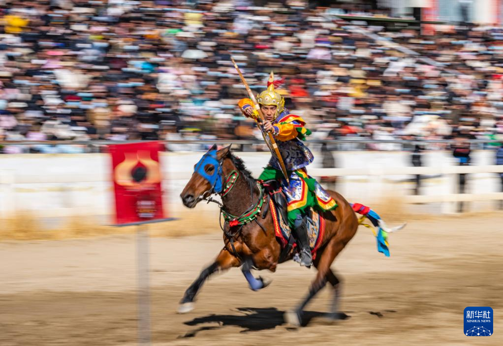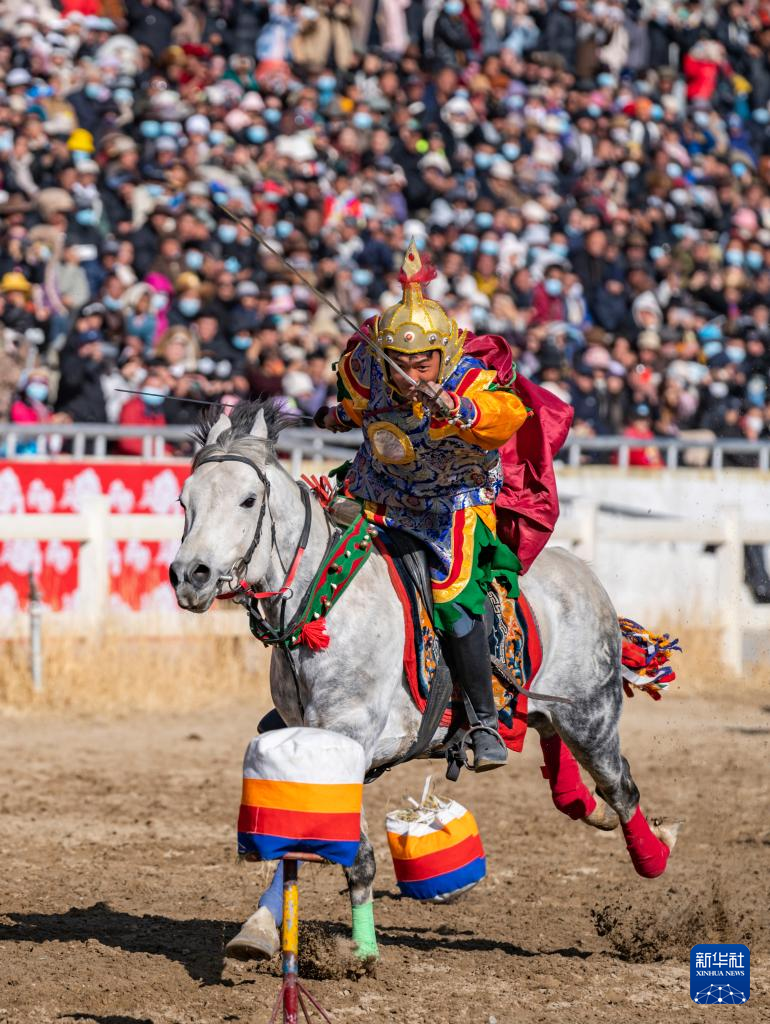 在拉薩賽馬場(chǎng),騎手表演馬上斬劈(2月12日攝)。新華社記者 孫非 攝