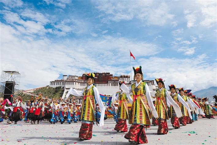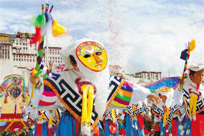 藏戲展演隊亮相布達拉宮廣場。