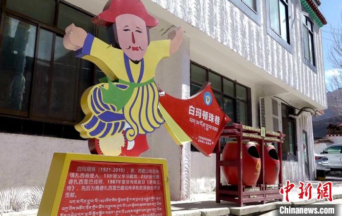 圖為山南市乃東區(qū)扎西曲登社區(qū)充滿藏戲藝術(shù)魅力的標(biāo)語。貢桑拉姆 攝