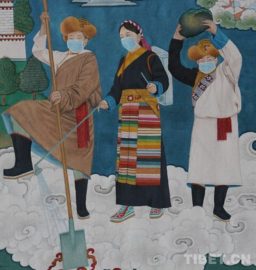 耗時一個多月,西藏唐卡畫師繪制戰(zhàn)“疫”主題唐卡