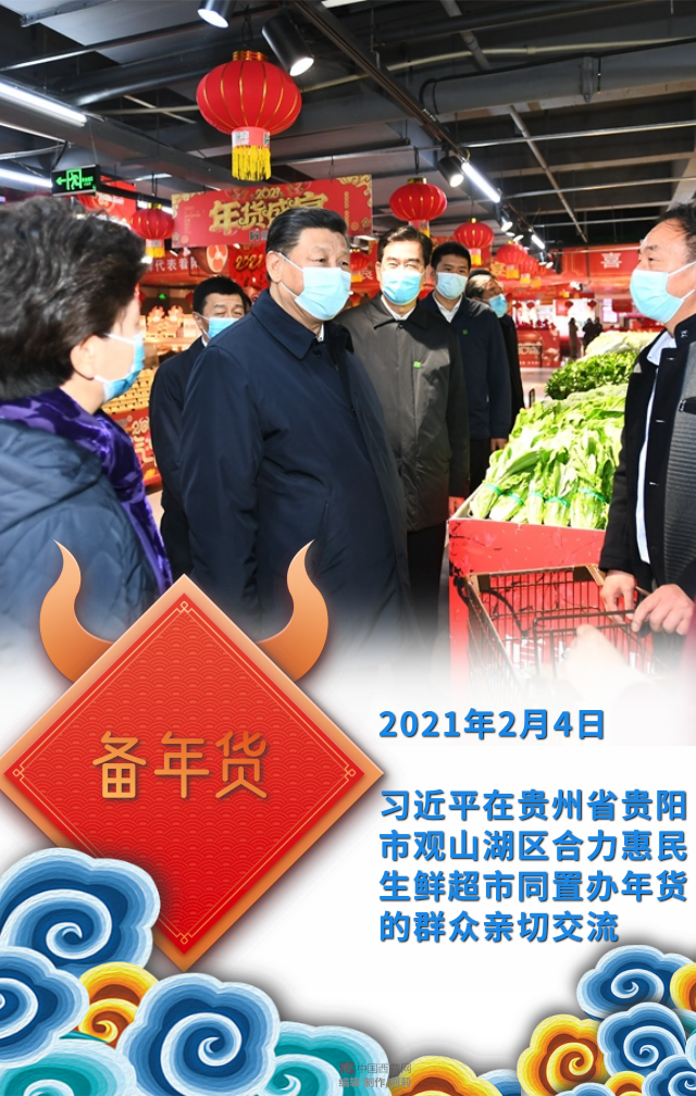 習(xí)近平在貴州省貴陽(yáng)市觀山湖區(qū)合力惠民生鮮超市同置辦年貨的群眾親切交流
