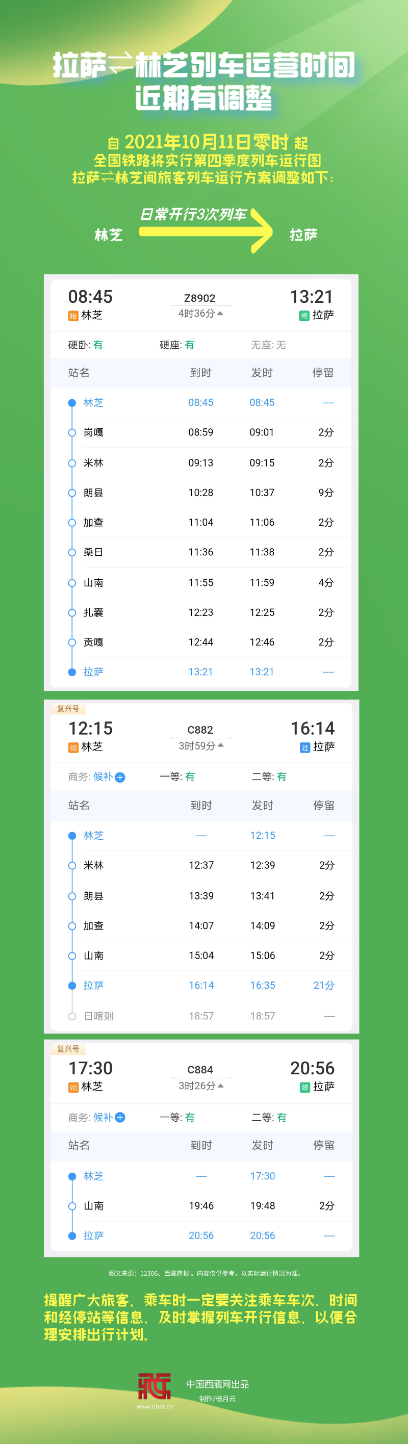 長圖|拉薩林芝列車運營時間近期有調(diào)整