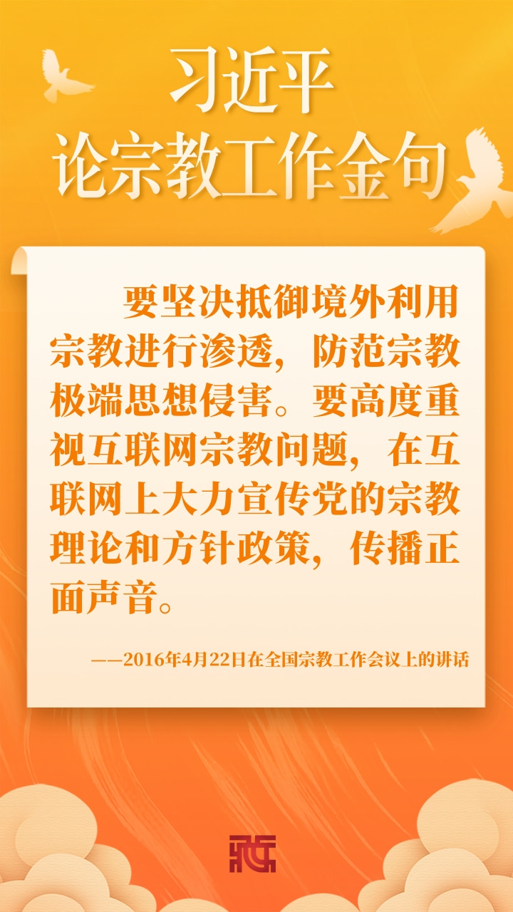黨的十八大以來(lái),習(xí)近平總書(shū)記著眼黨和國(guó)家工作全局,高度重視宗教工作,在出席重要會(huì)議講話中,在赴地方考察工作中,就宗教工作發(fā)表了一系列重要講話,提出了一系列重要主張,推動(dòng)宗教工作創(chuàng)新發(fā)展。